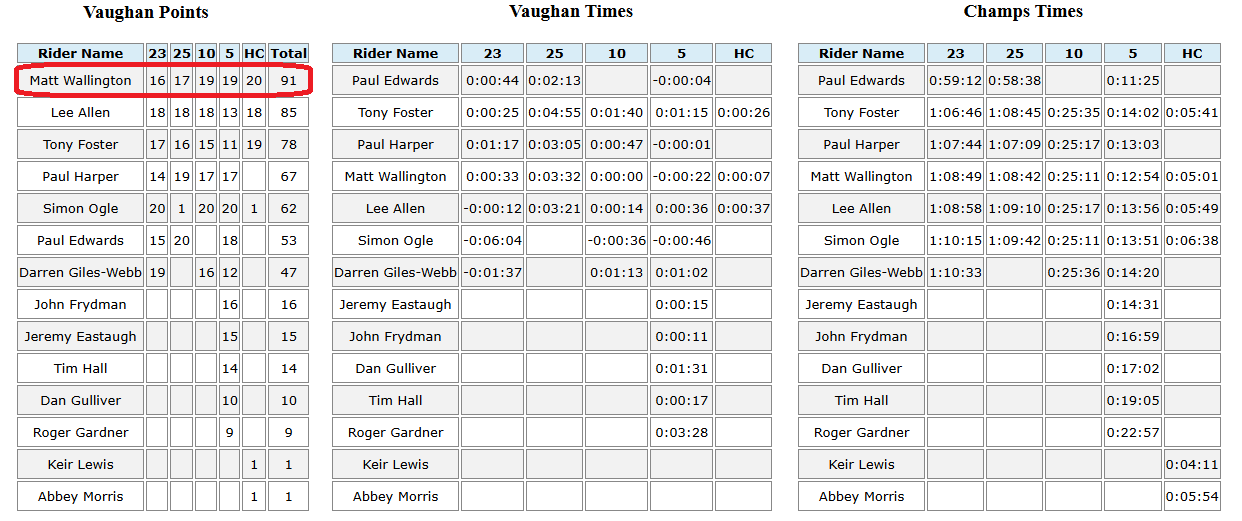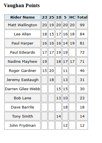 2023 Fixtures & Results Vaughan Trophy Men's Points Table